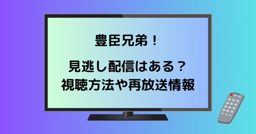 【豊臣兄弟!】見逃し配信はある?視聴方法や再放送情報を詳しく解説